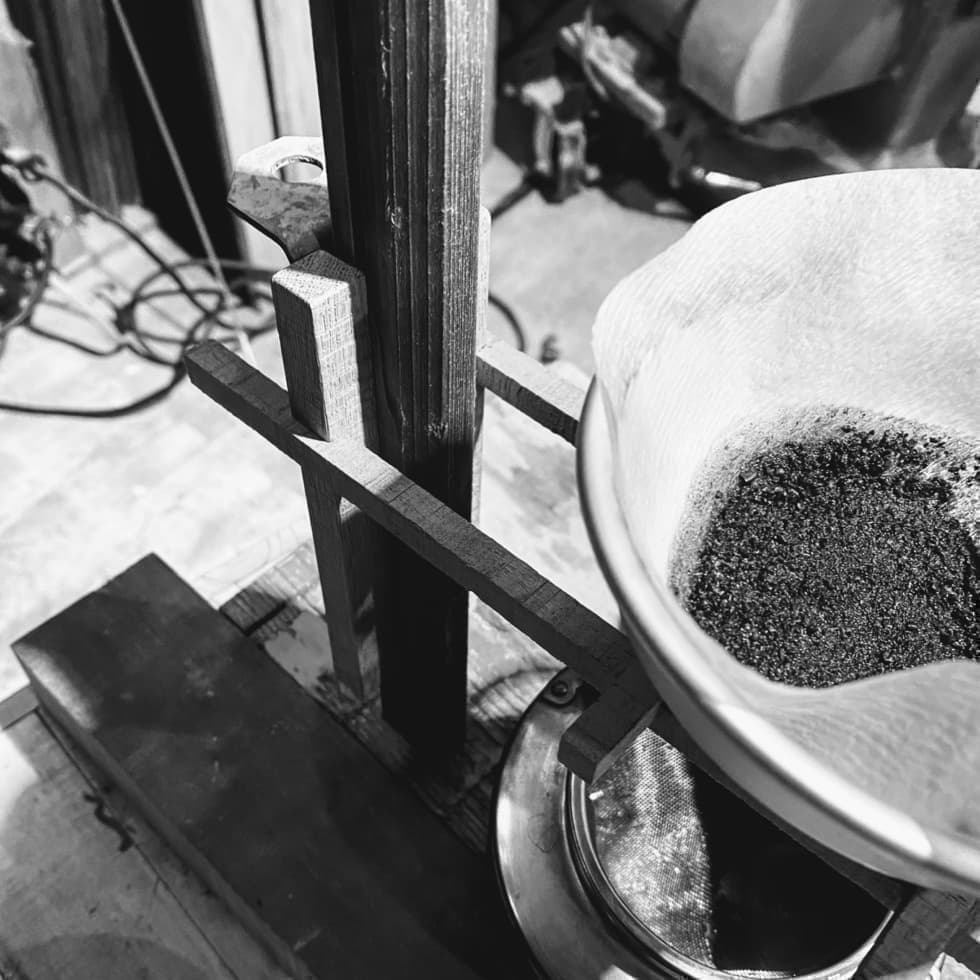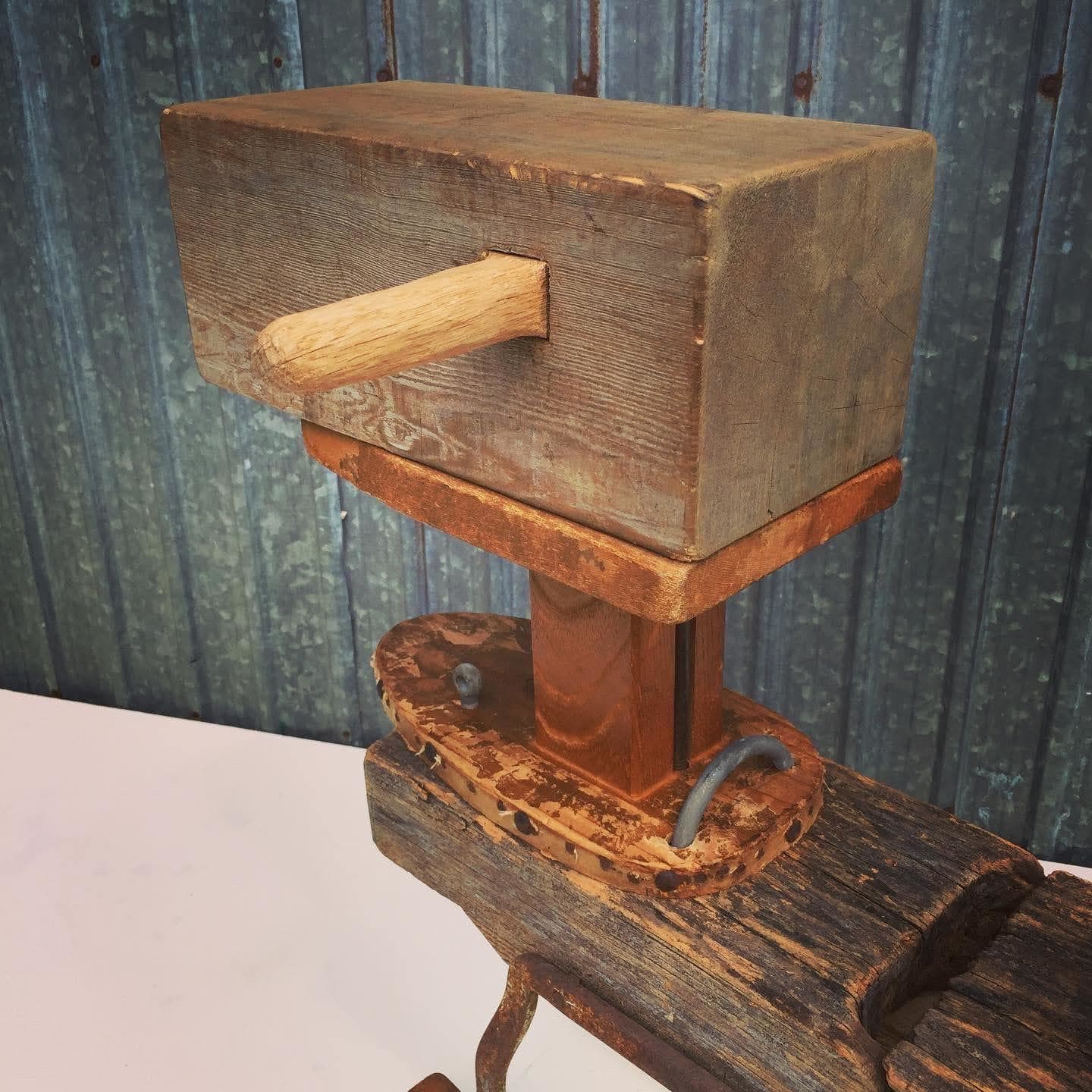 簡単な仕組みで上下出来る優れもので、普通は鉄製ですが、古い建具の横桟を再利用して木製の自在鉤を作りました。
